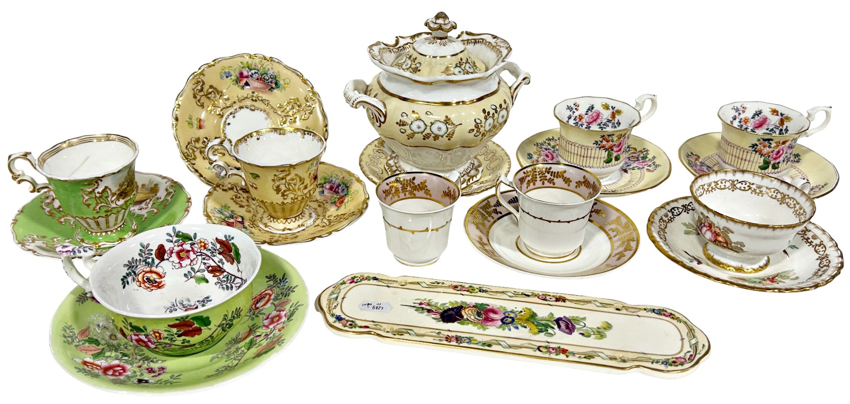 see images - VGC no issues, door plate is 29cm x 8cm, Spode Felspar Sucrier has a hairline crack, Copeland Garrett green teacup hairline crack to body, otherwise BVGC, see images
