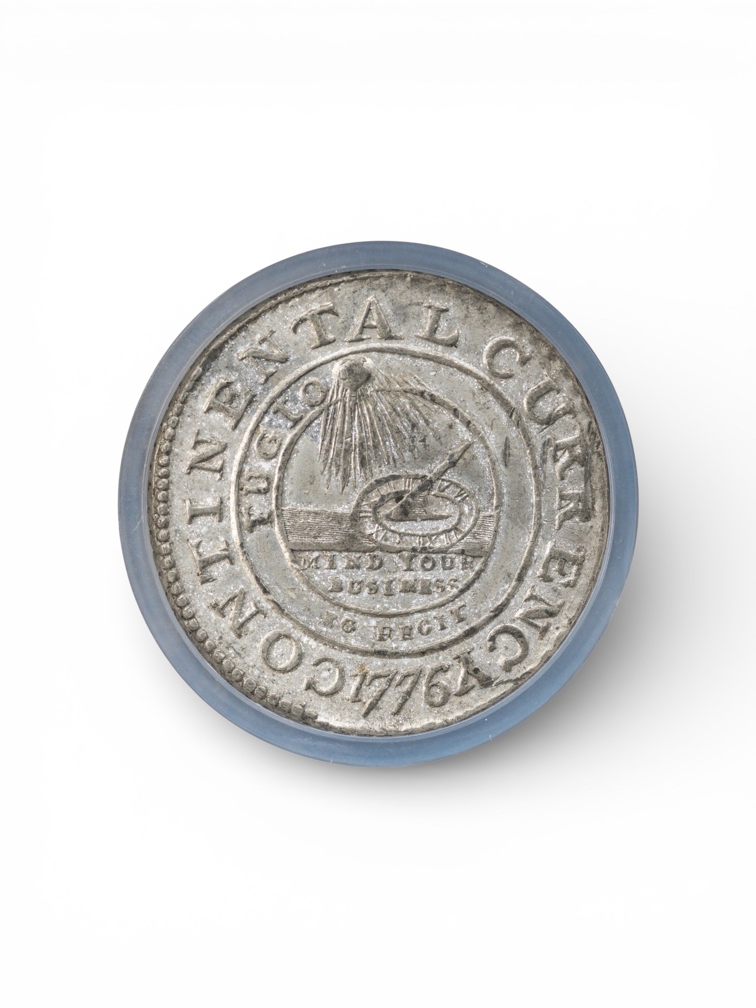 Obv: Newman 3 Die. Outer Ring, CONTINENTAL CURRENCY 1776, Inner Ring, FUGIO / EG FECIT, Below Sundial, MIND YOUR BUSINESS.