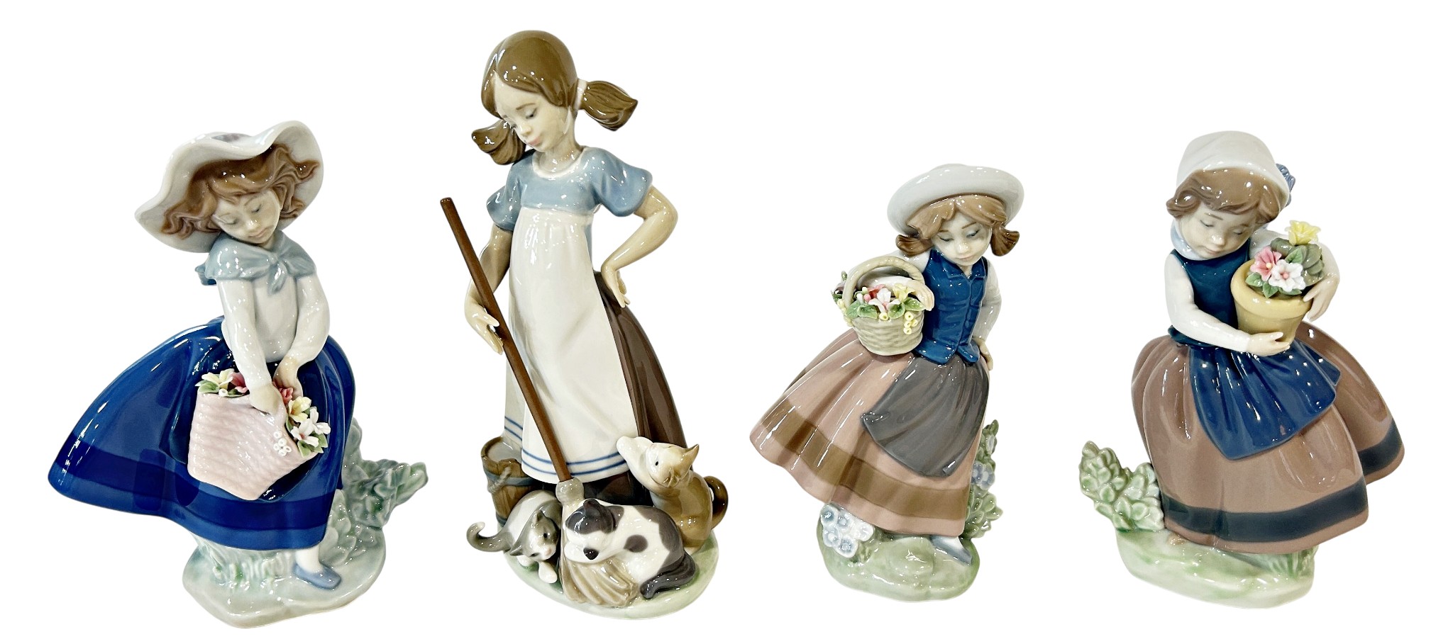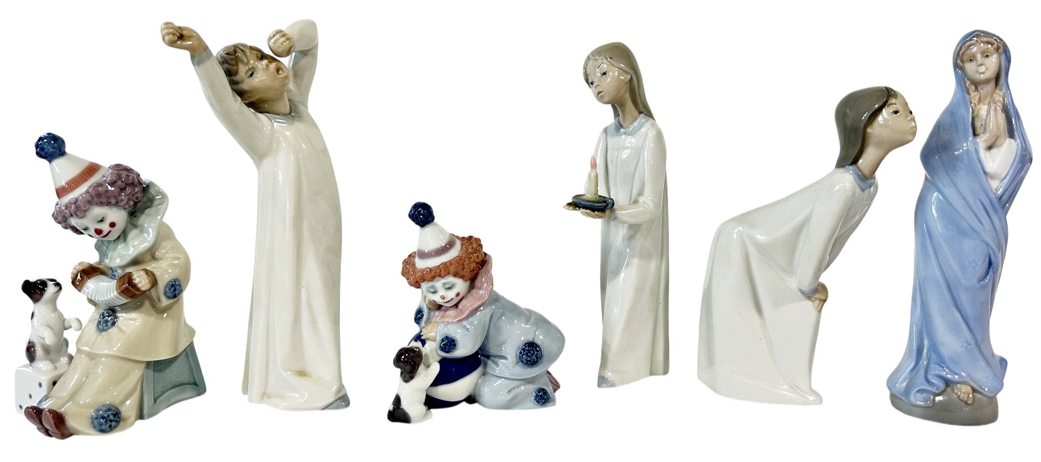 Nine Lladro groups all children in various pursuits, together with a further figure of The Virgin Mary (10)