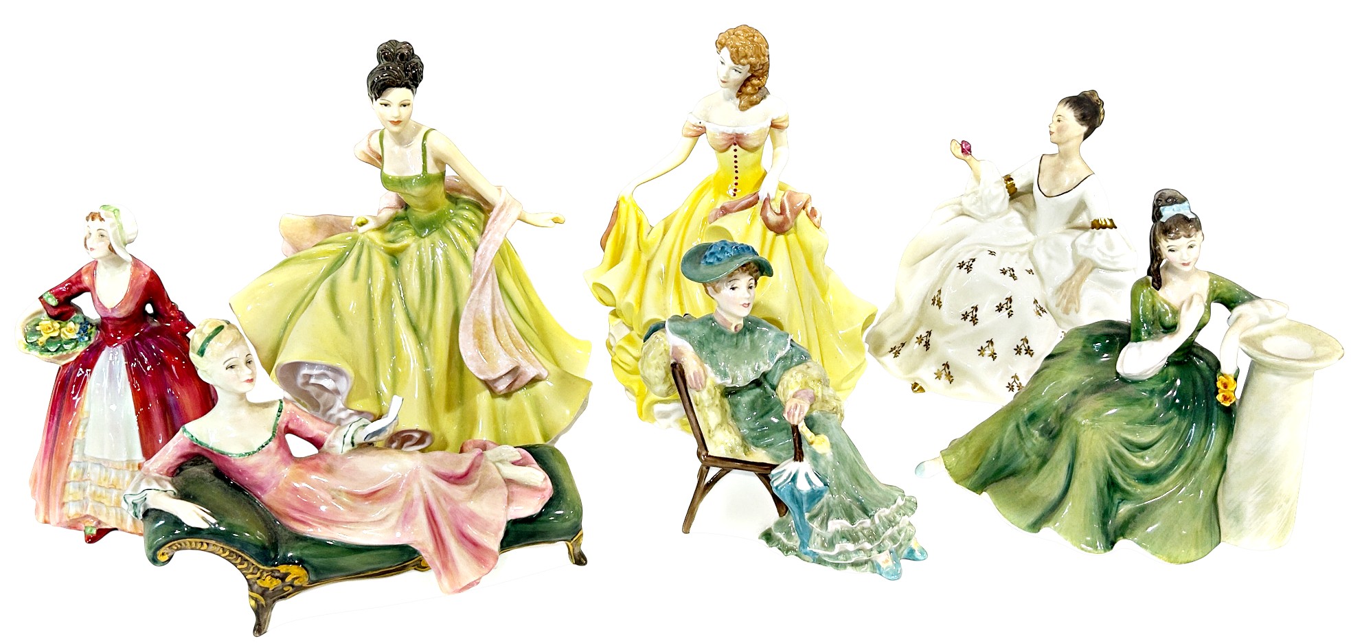 Seven Royal Doulton figures to include Pretty Ladies - Spring and Summer, Secret Thoughts, My Love, Janet, Ascot and Repose (7)